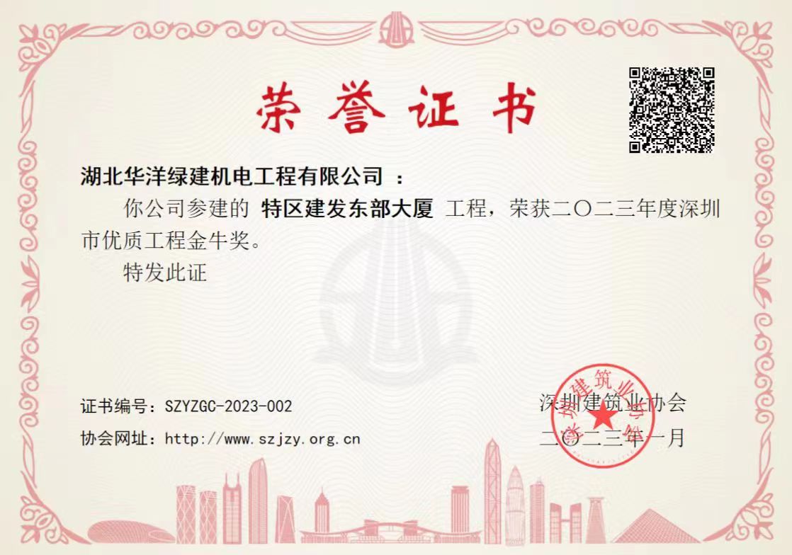 2023/01/18 深圳特區(qū)建發(fā)東部大廈項目榮獲“深圳市優(yōu)質(zhì)工程金牛獎”
